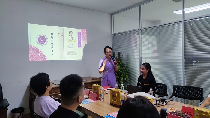 首页 > 新闻动态 > 公司新闻 >>返回 9月4日下午,巾帼下午茶走进正劲饮料,巾帼学堂校长冯赢女士参会并做理念分享,各位巾帼企业家代表与会,并进行了友好交流及资源对接,正劲饮料董事长梁凤玲致欢迎词。